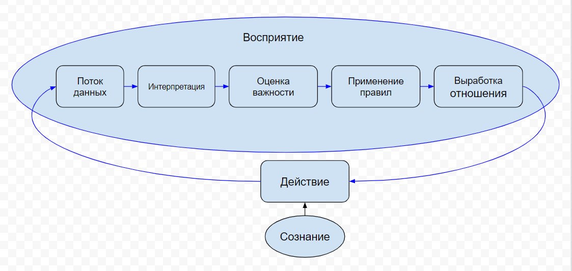 Если попытаться построить процесс восприятия в целом, говоря нашим языком построить модель восприятия, она будет выглядеть следующим образом: